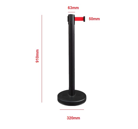 Phần dây căng có chiều dài 2m, bản rộng 5cm, giúp tạo khoảng cách phân luồng rõ ràng giữa các khu vực. Hệ thống đầu nối dây chắc chắn giúp việc căng dây và kết nối giữa các cột nhanh chóng, thuận tiện khi lắp đặt và di chuyển.